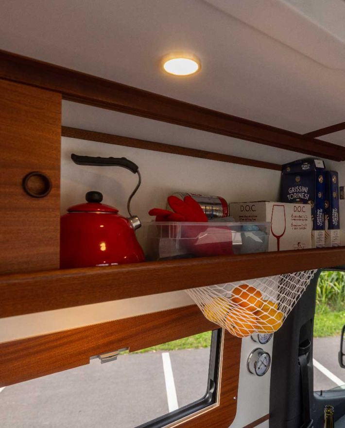 Die Camper von STONEWAVE sind mit viel Liebe zum Detail im maritimen Stil gestaltet. Der besonders smarte Ausbau erfolgt individuell nach Ihren Wünschen. Dabei verwenden wir natürlich nur die besten Materialien aus dem Bootsbau. Hier sehen Sie unser Modell STONEWAVE SUI1 auf Basis eines Mercedes Benz W910 Sprinter 319 4x4 L3H2.